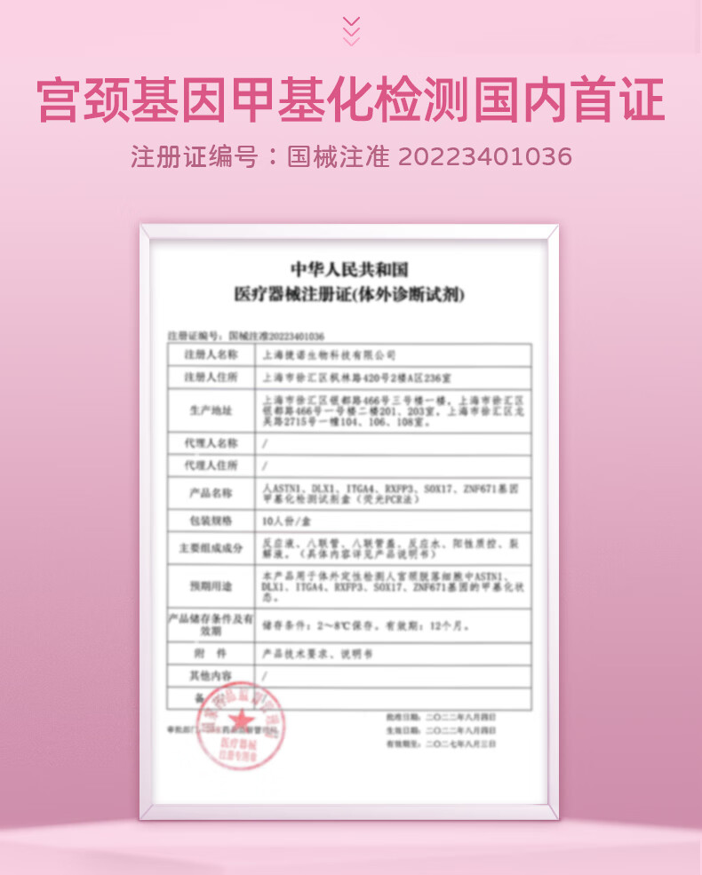 ASTN1、DLX1、ITGA4、RXFP3、SOX17、ZNF671基因甲基化检测试剂盒(荧光PCR法) 国械注准20223401036